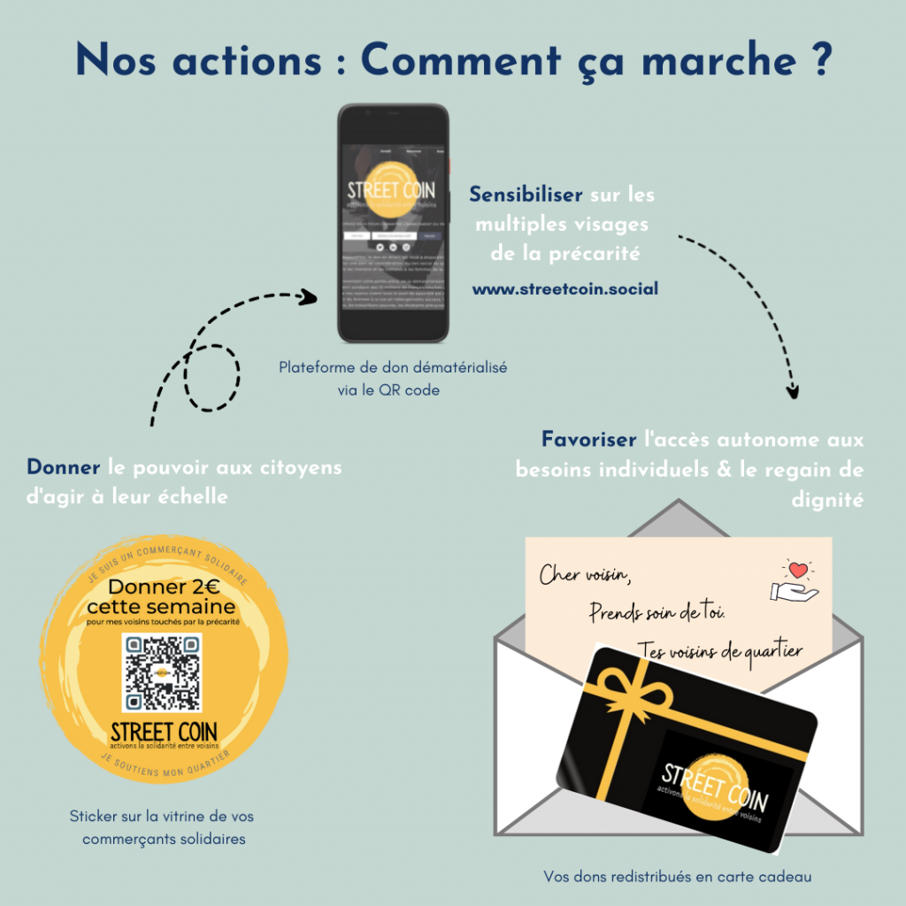Aujourd’hui, le projet pilote vient d’être lancé dans le 9ème arrondissement; vous pouvez retrouvez Street Coin sur les vitrines de commerçants solidaires.