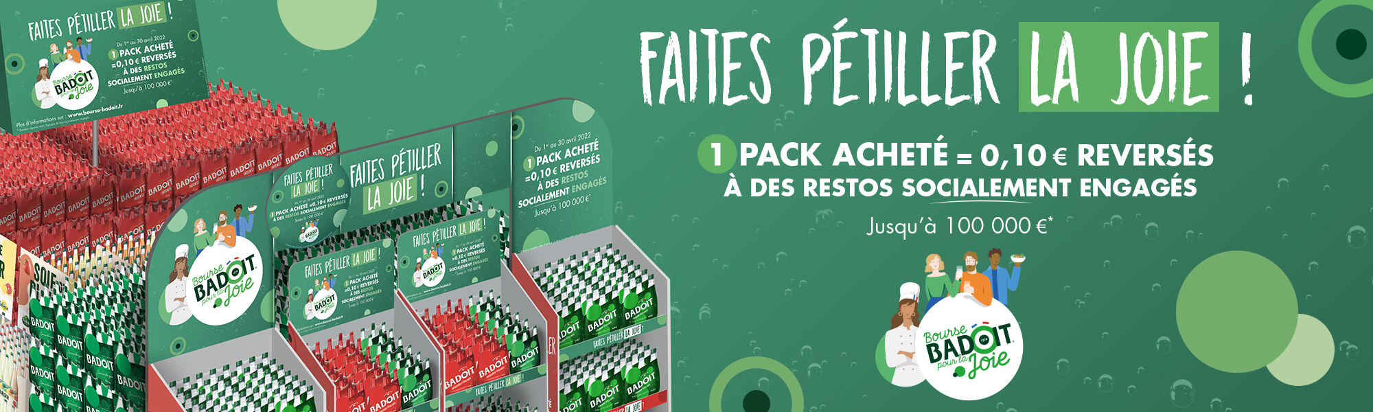 Création d’un dispositif de PLV pour le temps fort Badoit 2022 : arche, meuble 30 secondes, pop up et toblerone avec une activation pour soutenir les restaurateurs socialement engagés.