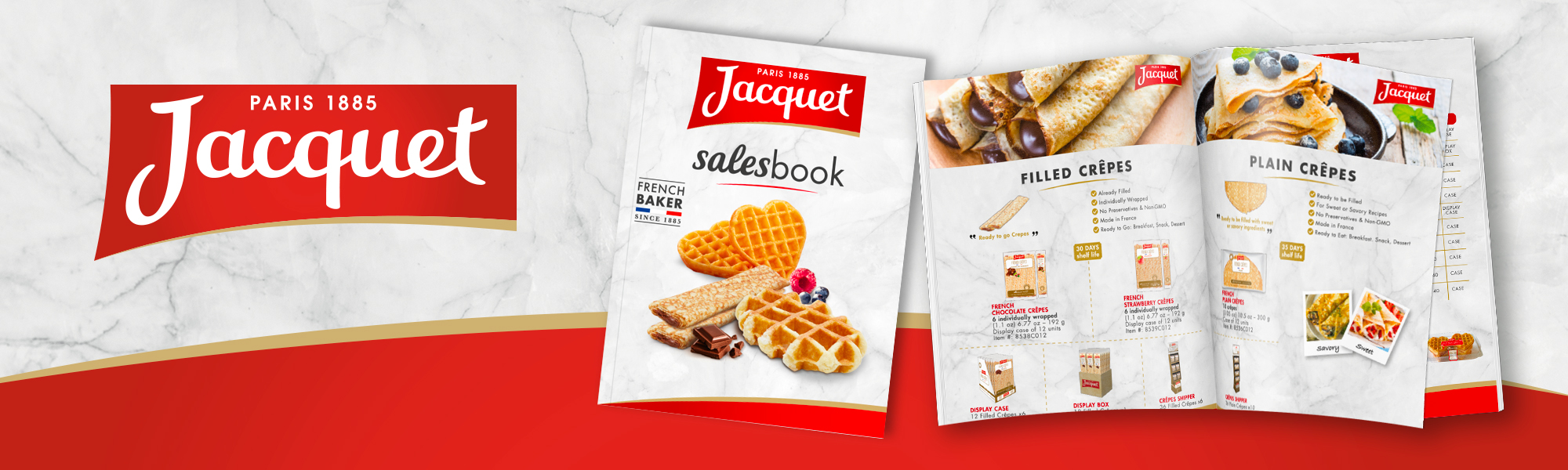 Création d’un argumentaire de vente avec l’ensemble des références Jacquet disponibles pour le réseau RHD aux États-Unis. Un univers graphique qui retranscrit le positionnement « French baker since 1885 » de Jacquet à l’export.