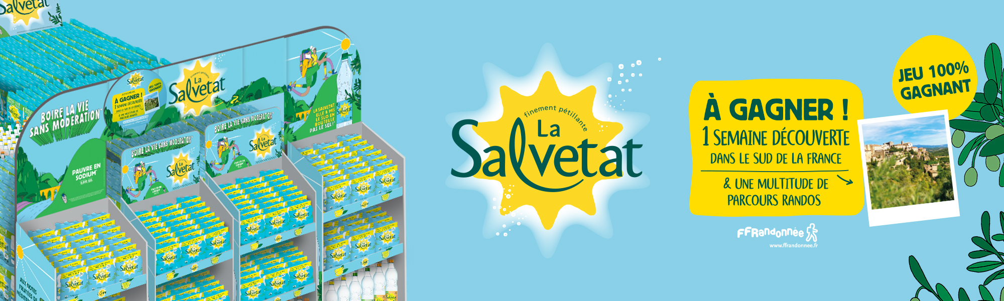 Reprise des nouveaux assets de la marque pour les décliner sur les différents supports en GMS, avec relais et mise en avant d’un jeu 100% gagnant : tentez de gagner une semaine découverte dans le Sud de la France ou une multitude de parcours rando, en partenariat avec la Fédération Française de Randonnée.