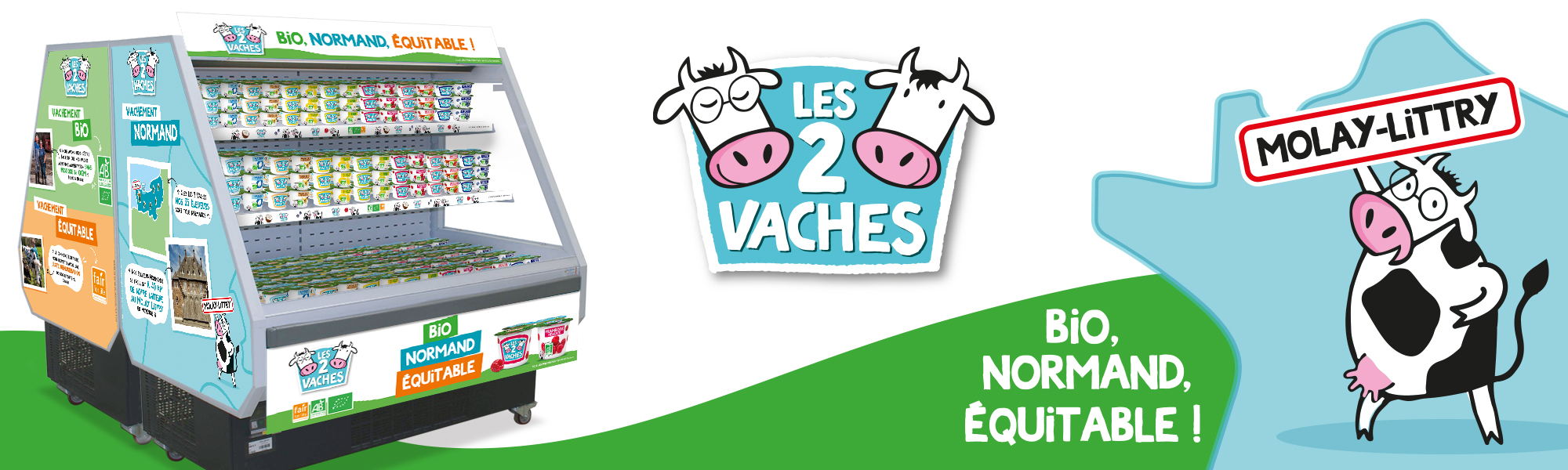 Trapèze poursuit son partenariat avec L2V en l’accompagnant sur son Big event 2022 pour habiller les meubles promotionnels de la marque. Une prise de parole autour des 3 piliers de la marque : “Vachement” BIO, NORMAND ET EQUITABLE ! Valorisation de ces engagements dans un esprit graphique illustratif, bavard, et naturel…aux couleurs de la marque.