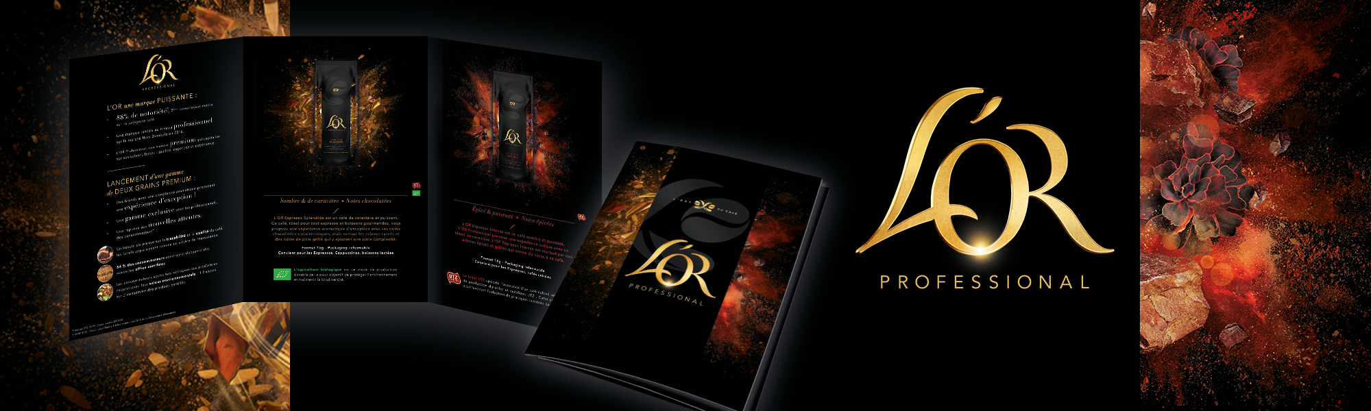 Réalisation d’un leaflet dans le cadre du nouveau positionnement de la marque L’OR Professionnel et du lancement de deux nouvelles références à destination des restaurateurs et des entreprises.