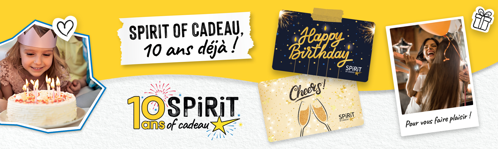 Dans le prolongement de cet univers branding et à l’occasion des 10 ans de Spirit of Cadeau, Trapèze développe un logotype et un KV “10 ans déjà” pour célébrer l’évènement !