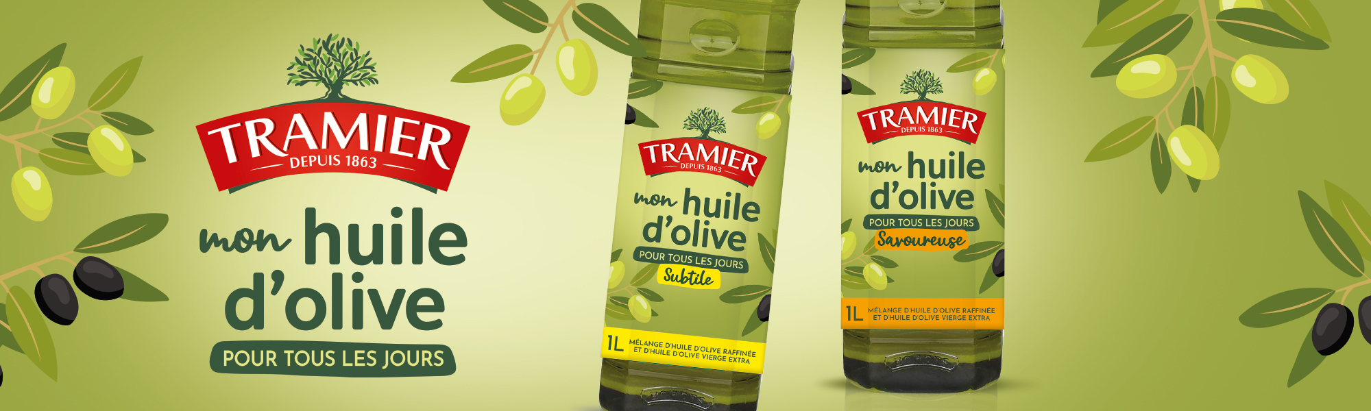 Dans un contexte économique et sanitaire difficile, Tramier lance une toute nouvelle gamme d’huile d’olive, idéale pour vous accompagner tous les jours. Un mélange d’huile d’olive raffinée et vierge extra convenant pour tous les usages. Création d’une univers illustratif et positif pour mettre en avant toute l’accessibilité et la simplicité de l’offre, sans oublier son goût subtil ou savoureux !